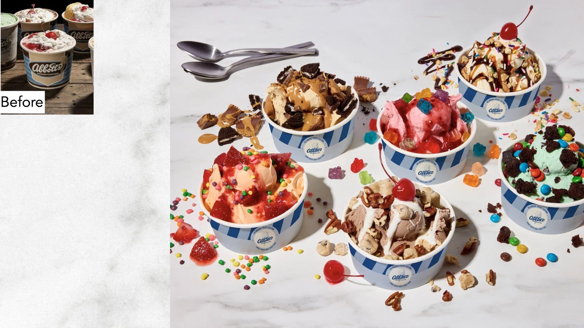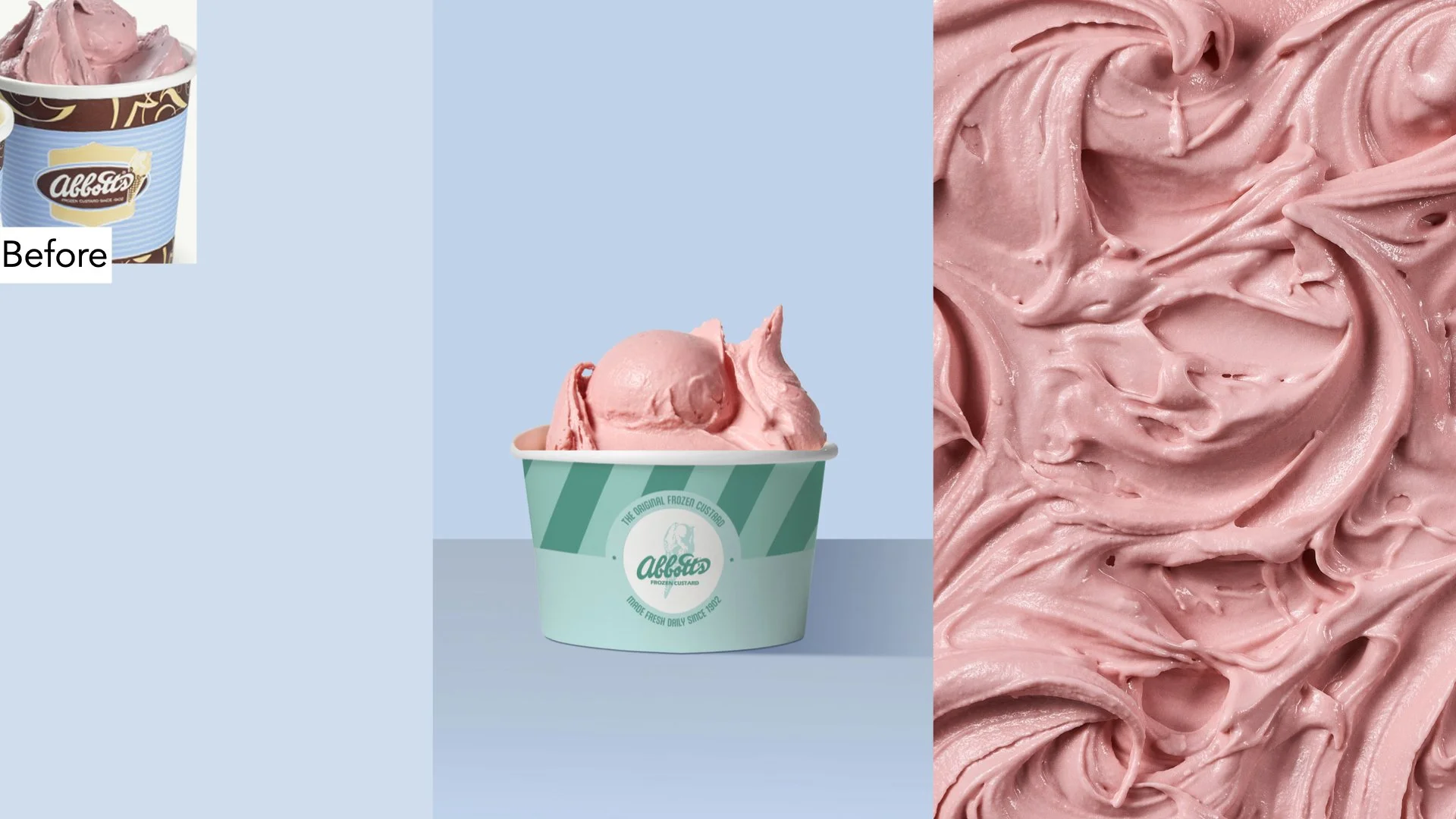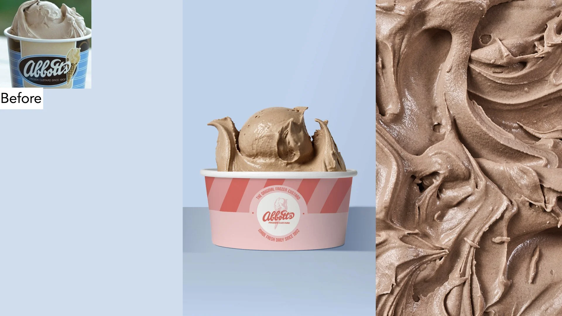 In (re)claiming Abbott’s rightful throne as the Original Frozen Custard, we traded ‘old’ for OG. A brighter color palette, simplified logo, and fresh designs modernized the century-old vibe.