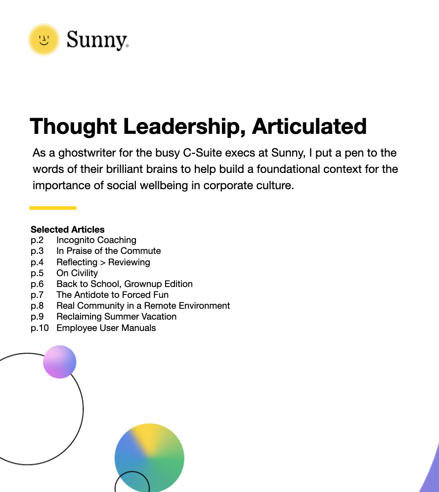 To help launch Sunny Workplace, I translated ultra-techy well-being studies and scientific reports into layman’s white papers, articles, and LinkedIn posts.