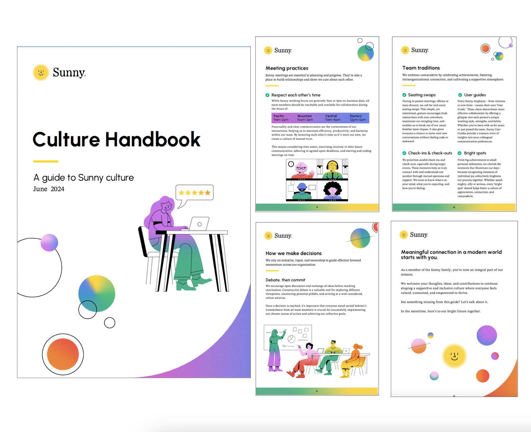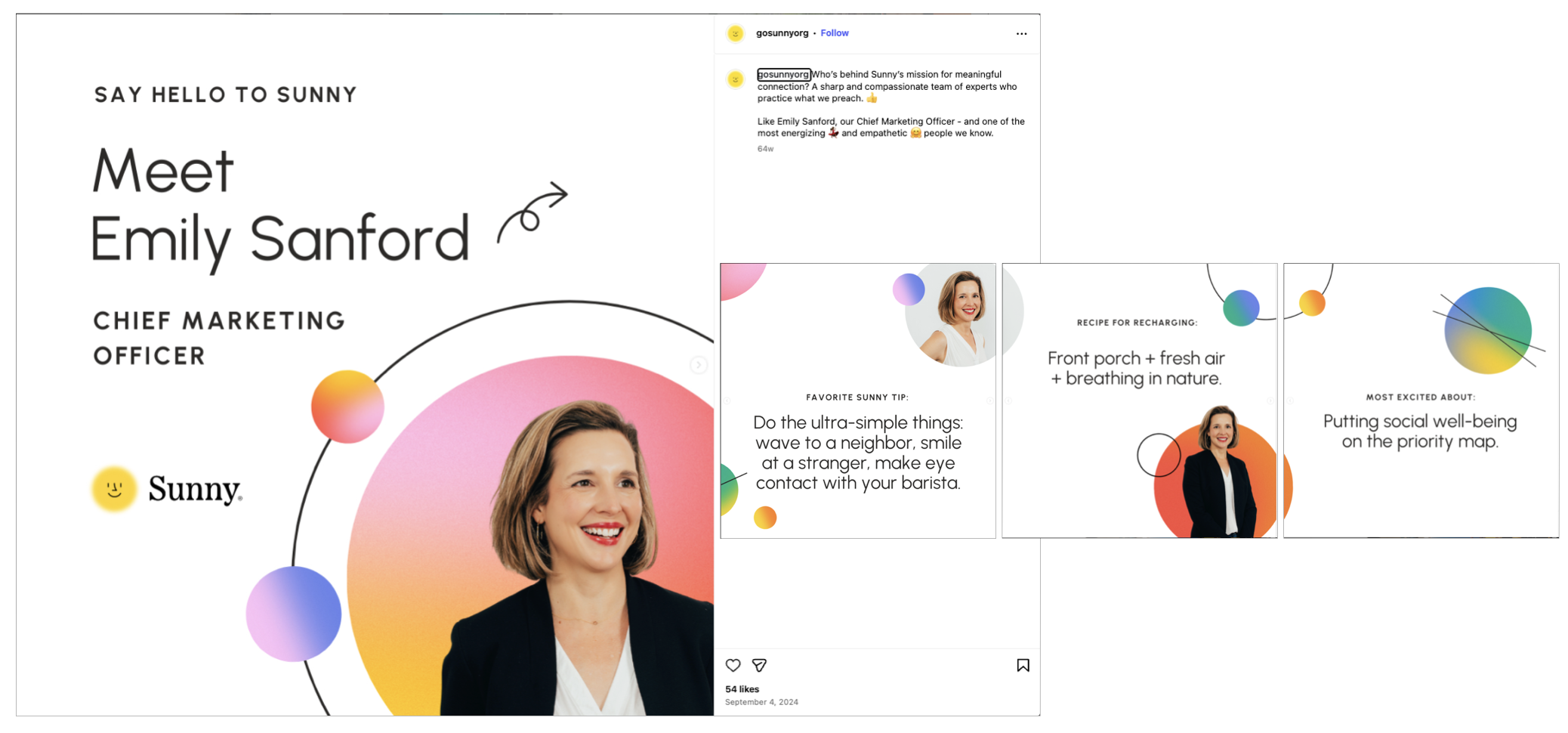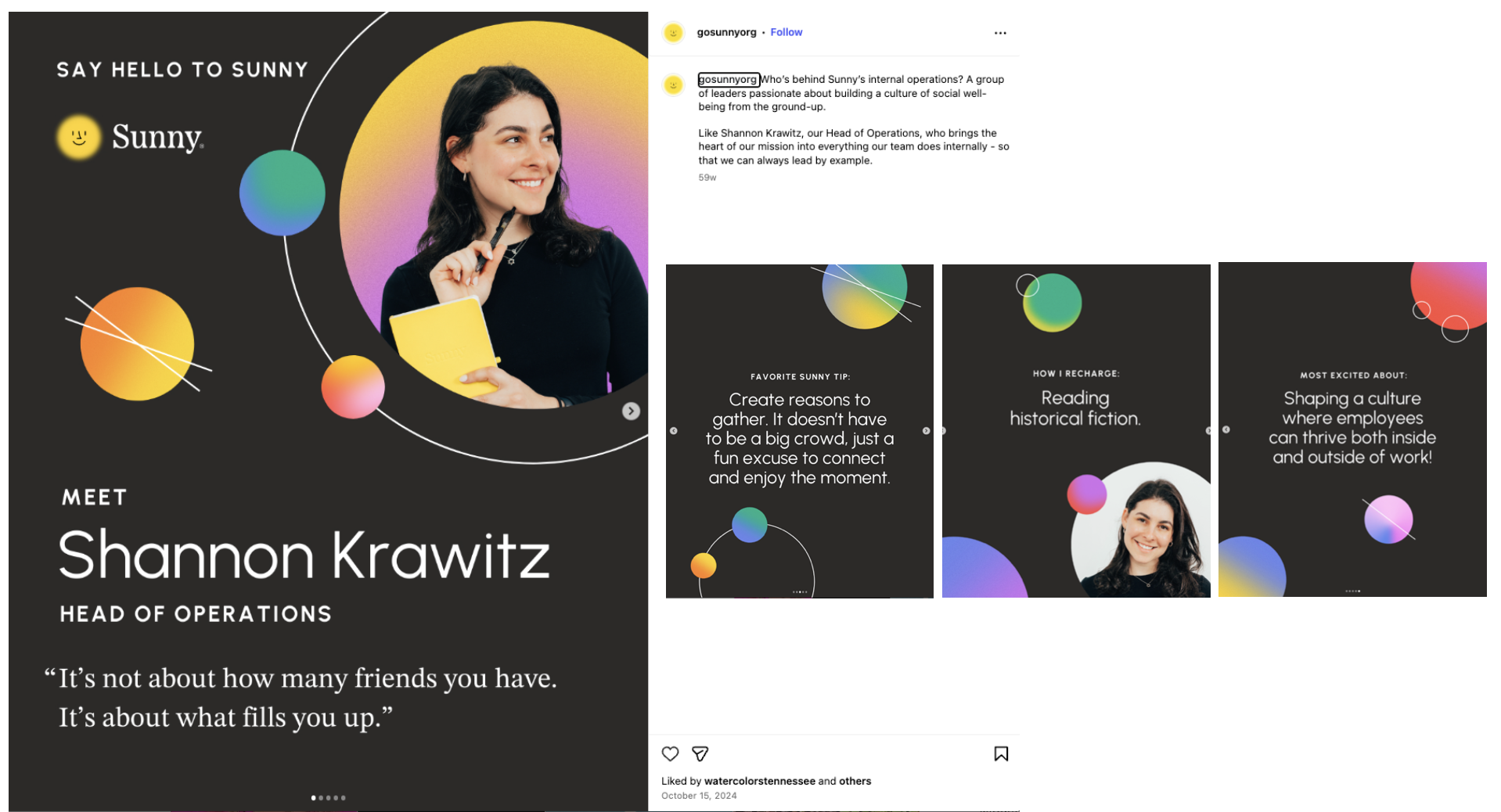 The employees at Sunny aren’t just purveyors of social well-being. They’re active participants. I helped craft an internal playbook and external platform worthy of this calling.